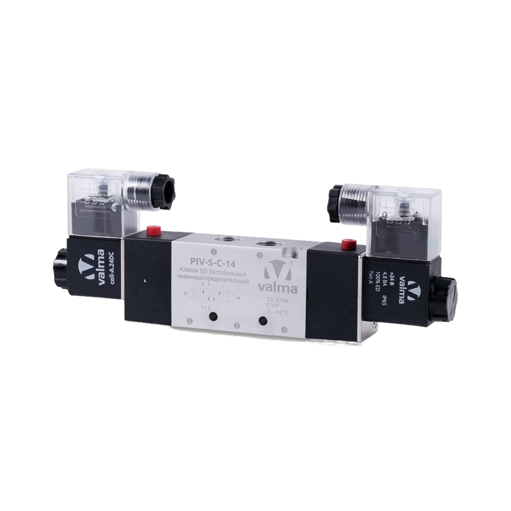 PIV-S-C-18.24DC Клапан пневмораспределительный 5/2 бистабильный, G 1/8''